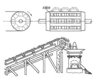磁力滾筒又稱干磁輥,其結(jié)構(gòu)簡(jiǎn)單,可直接安裝在皮帶輸送機(jī)的頭部,也可以叫拋廢機(jī)。它可用于物料除鐵,特別是用于磁鐵礦塊礦預(yù)選,俗稱減石頭機(jī)。