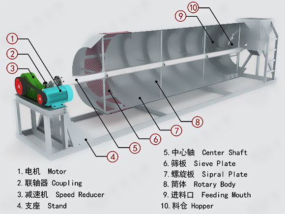 筒式洗礦機(jī)是由筒體、聯(lián)軸器、篩板、螺旋版、料倉等部分組成...